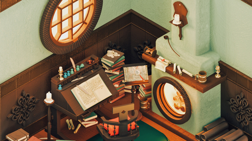 Series of iconic rooms illustrated in quarantine. These 3D illustrations are inspired by Arts, Literature, and Cinema. Available as free zoom backgrounds.